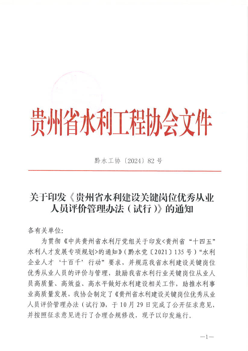 《貴州省水利建設(shè)關(guān)鍵崗位優(yōu)秀從業(yè)人員評價管理辦法(試行)》