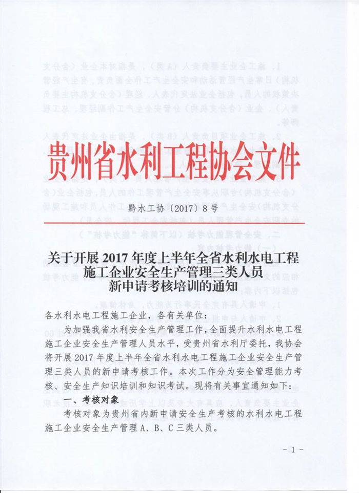 關(guān)于開展2017年度上半年全省水利水電工程施工企業(yè)安全生產(chǎn)管理三類人員新申請考核培訓(xùn)的通知