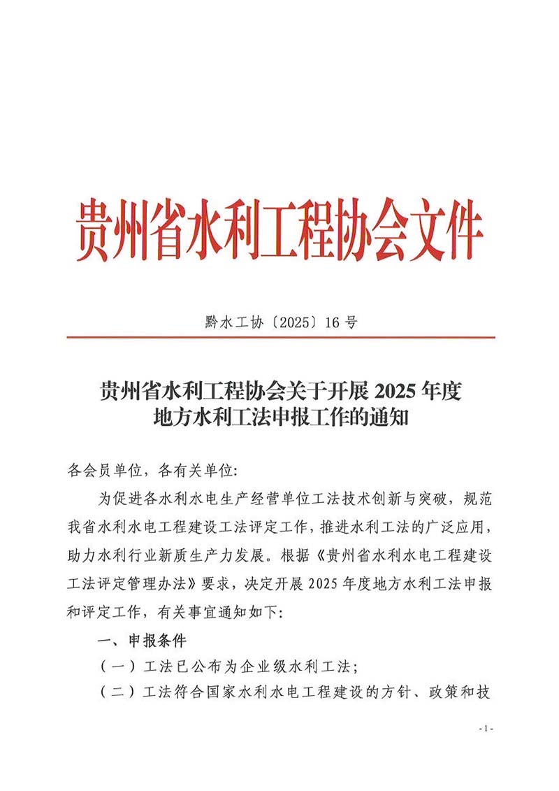 關(guān)于開展2025年度地方水利工法申報(bào)工作的通知