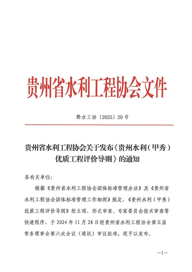 關于發(fā)布《貴州水利(甲秀)優(yōu)質工程評價導則》的通知