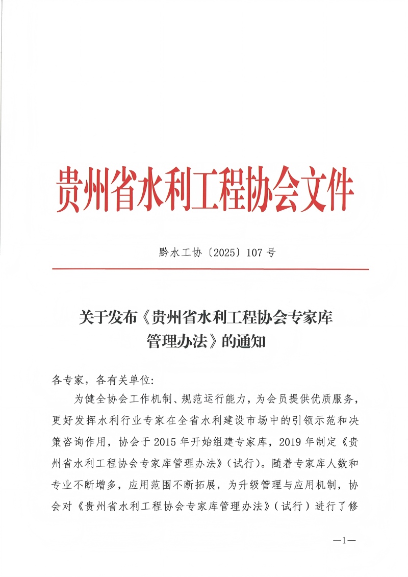 關(guān)于發(fā)布《貴州省水利工程協(xié)會(huì)專(zhuān)家?guī)旃芾磙k法》的通知