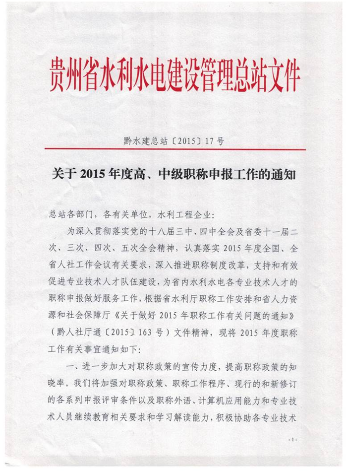 關于2015年度高中級職稱申報工作的通知