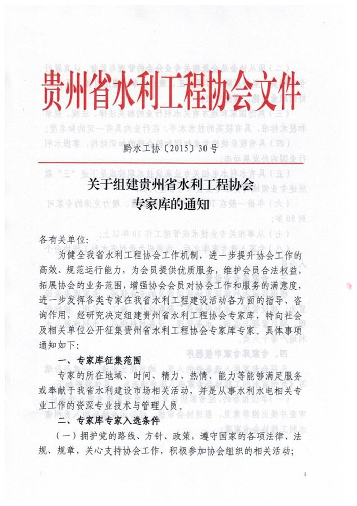 關(guān)于組建貴州省水利工程協(xié)會(huì)專家?guī)斓耐ㄖ?/div>