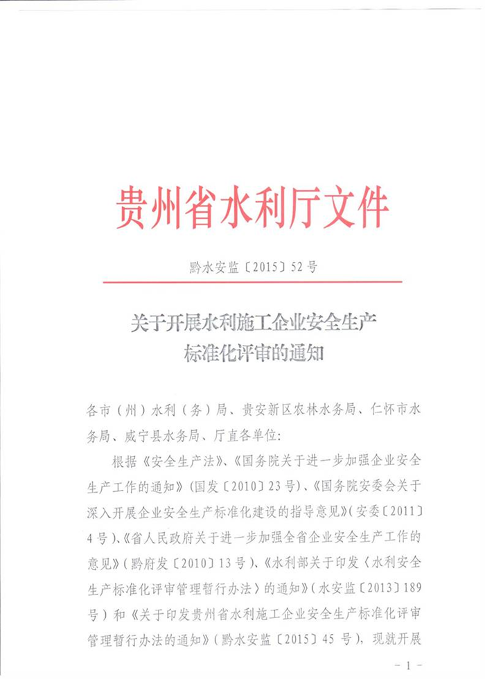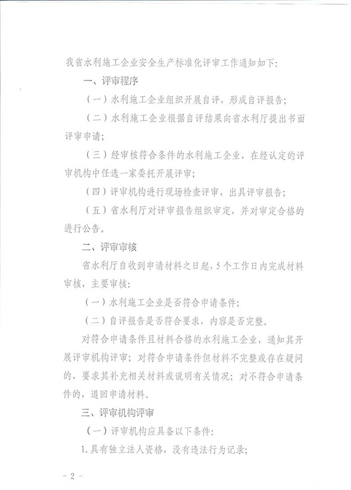 關(guān)于開展水利施工企業(yè)安全生產(chǎn)標(biāo)準(zhǔn)化評審的通知