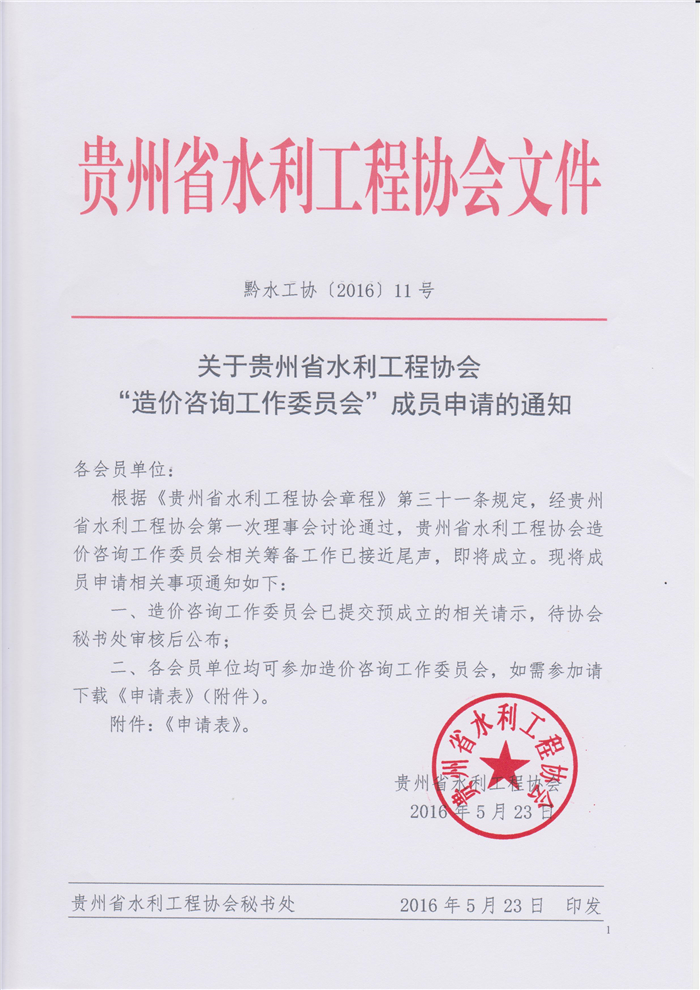 關(guān)于貴州省水利工程協(xié)會(huì)“造價(jià)咨詢工作委員會(huì)”成員申請(qǐng)的通知