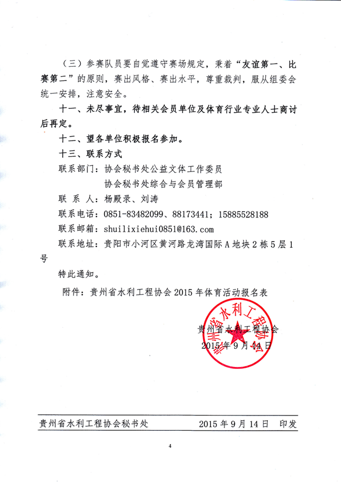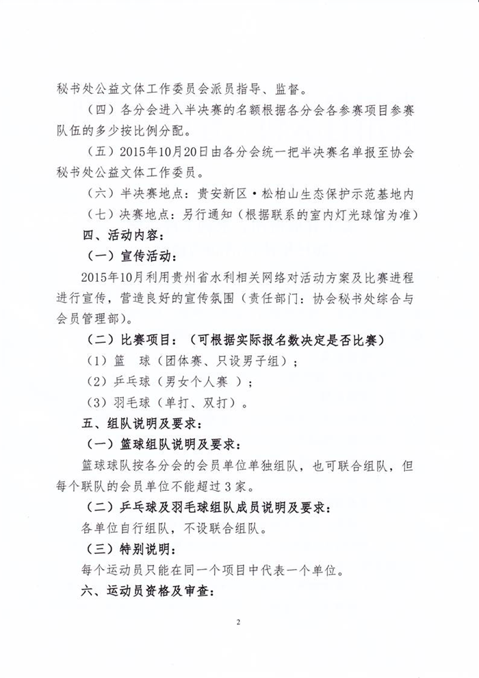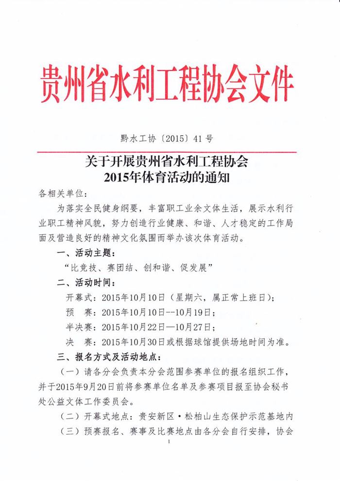 關(guān)于開展貴州省水利工程協(xié)會(huì)2015年體育活動(dòng)的通知