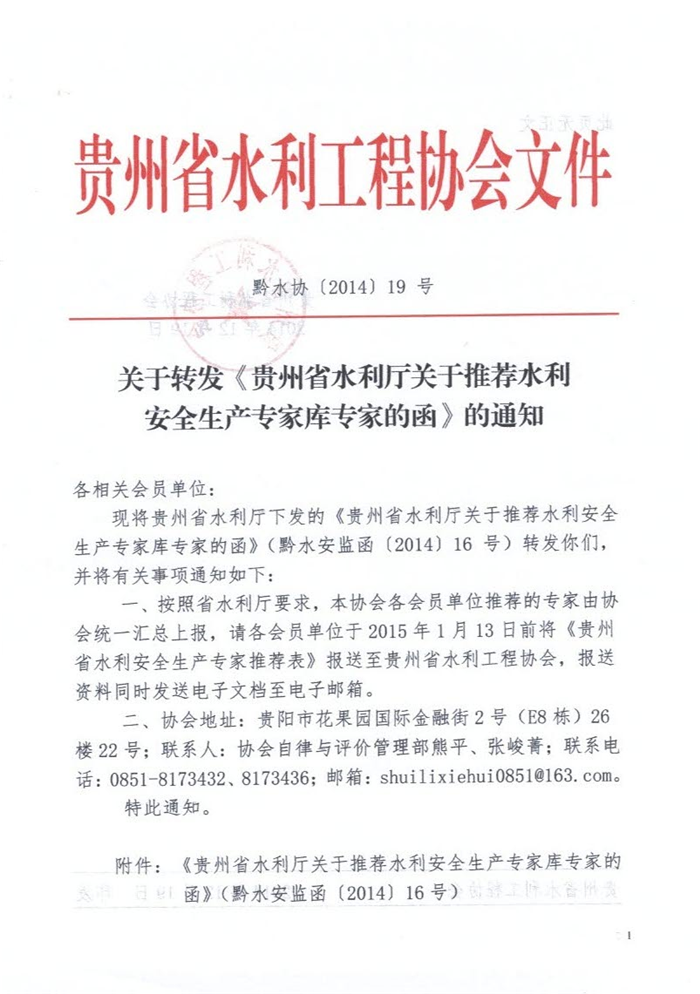 關(guān)于轉(zhuǎn)發(fā)《貴州省水利廳關(guān)于推薦水利安全生產(chǎn)專家?guī)鞂<业暮返耐ㄖ?/div>