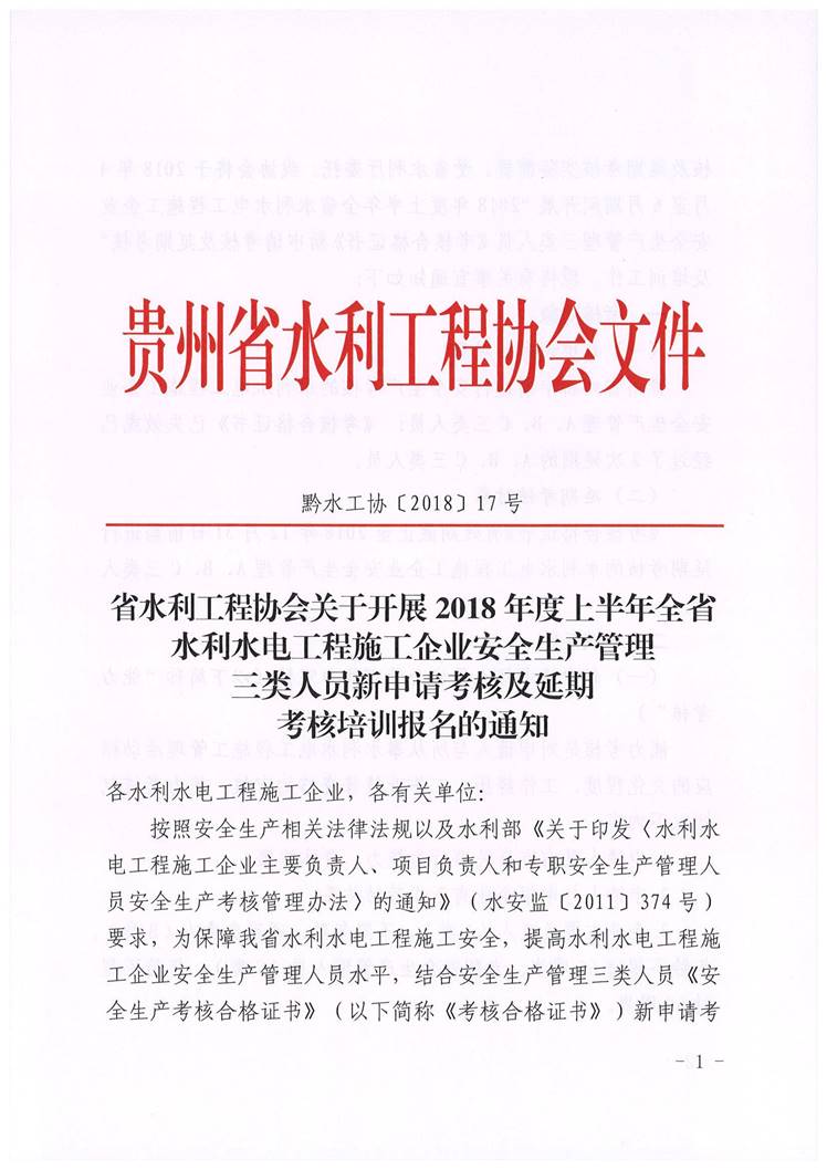 省水利工程協(xié)會(huì)關(guān)于開展2018年度上半年全省水利水電工程施工企業(yè)安全生產(chǎn)管理 三類人員新申請考核及延期 考核培訓(xùn)報(bào)名的通知