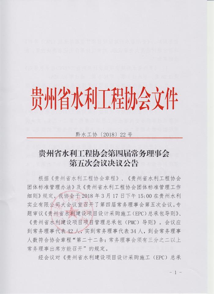 貴州省水利工程協(xié)會(huì)第四屆常務(wù)理事會(huì)第五次會(huì)議決議公告