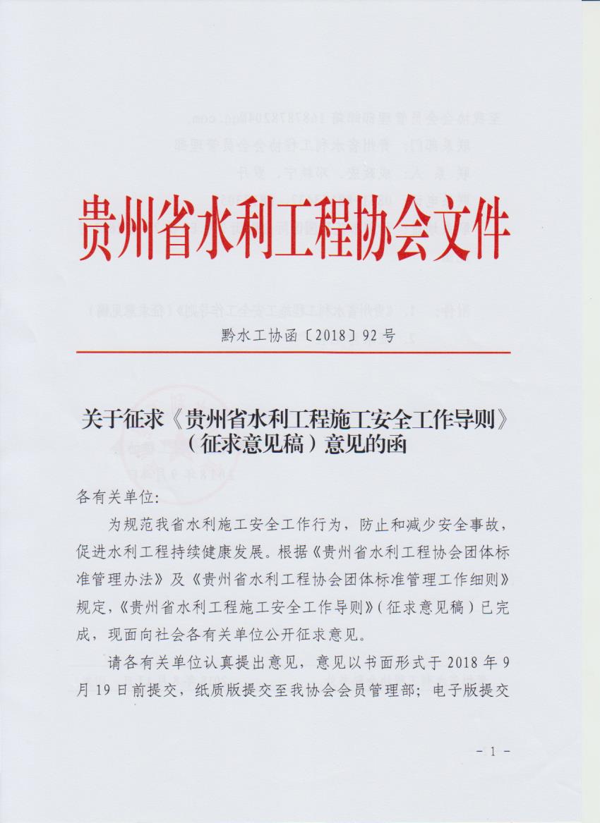 關(guān)于征求《貴州省水利工程施工安全工作導(dǎo)則》(征求意見(jiàn)稿)意見(jiàn)的函