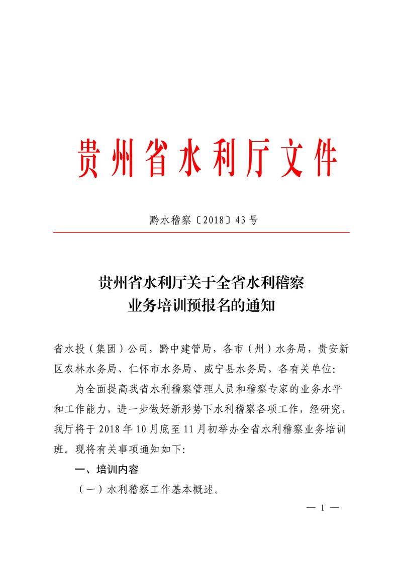 省水利工程協(xié)會(huì)關(guān)于轉(zhuǎn)發(fā)《貴州省水利廳關(guān)于全省水利稽察業(yè)務(wù)培訓(xùn)預(yù)報(bào)名的通知》的通知