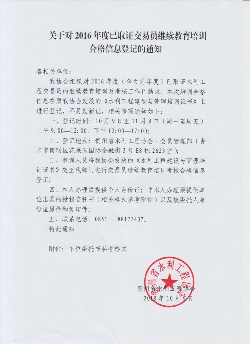關(guān)于對(duì)2016年度已取證交易員繼續(xù)教育培訓(xùn)合格信息登記的通知