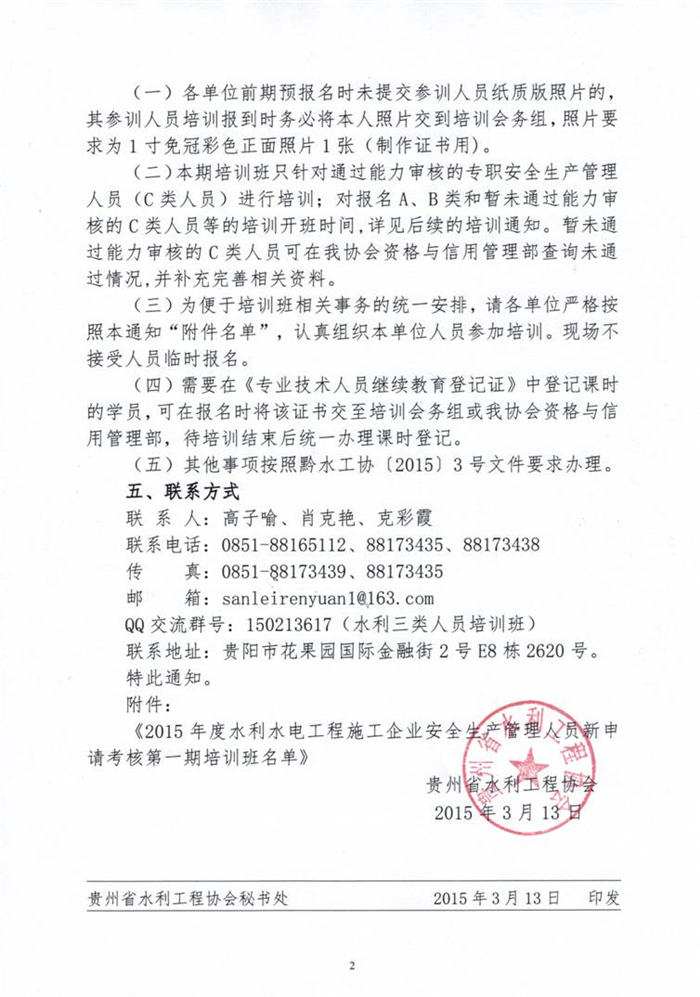 關(guān)于2015年度全省水利水電工程施工企業(yè)安全生產(chǎn)管理三類人員新申請考核第一期培訓班開班通知