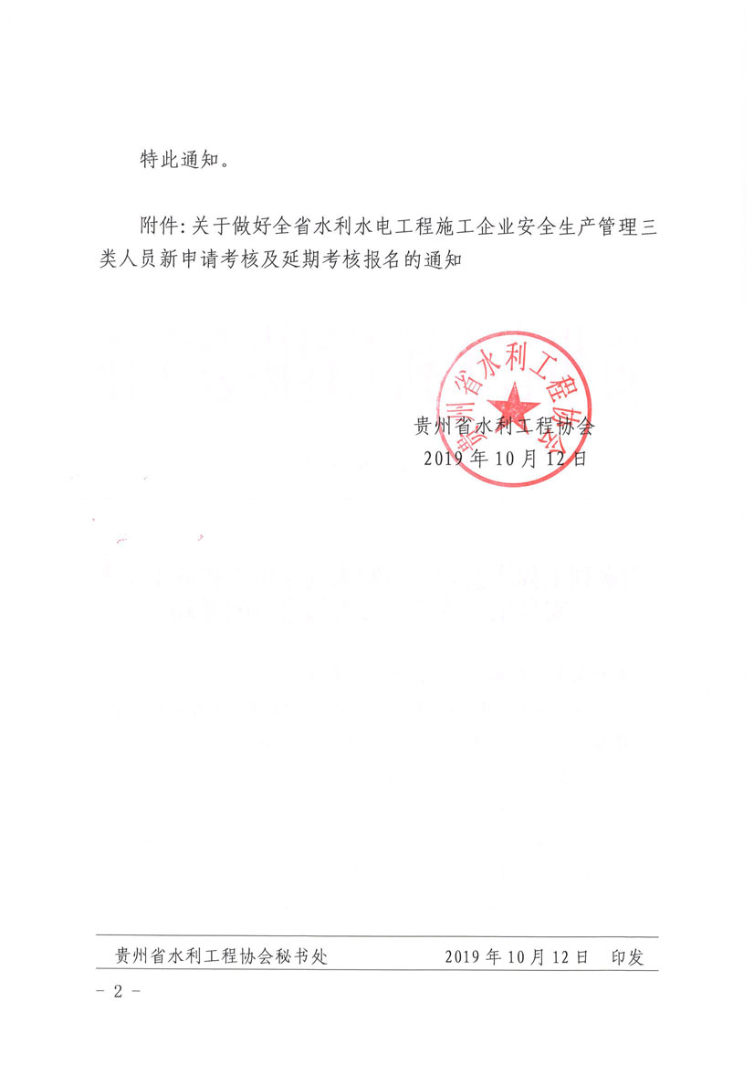 省水利工程協(xié)會關(guān)于轉(zhuǎn)發(fā)水利水電工程施工企業(yè)安全生產(chǎn)管理三類人員考核的通知