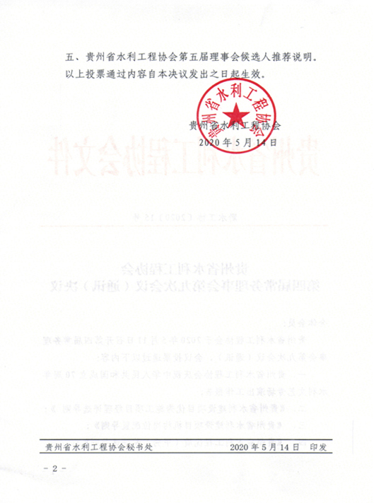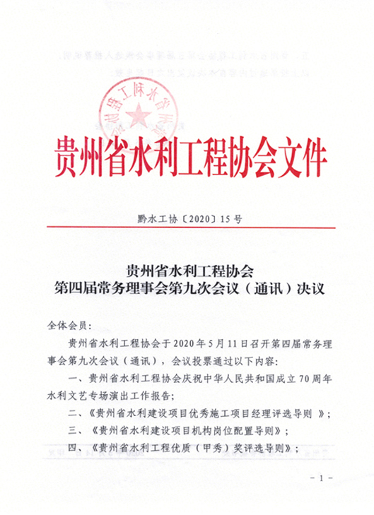 貴州省水利工程協(xié)會第四屆常務(wù)理事會第九次會議(通訊)決議