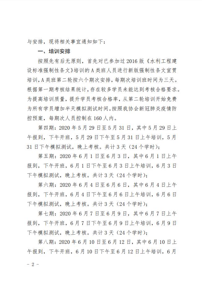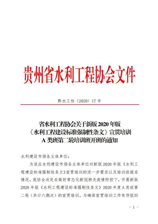 省水利工程協(xié)會關(guān)于新版2020年版《水利工程建設(shè)標(biāo)準(zhǔn)強制性條文》宣貫培訓(xùn) A類班第二輪培訓(xùn)班開班的通知