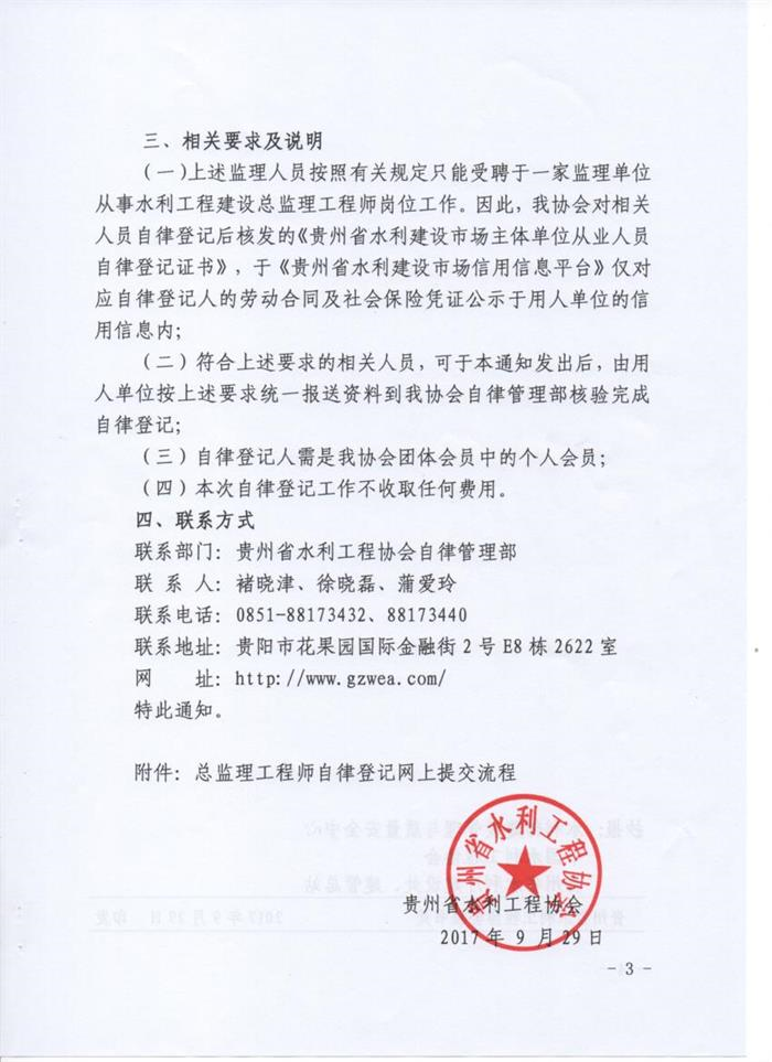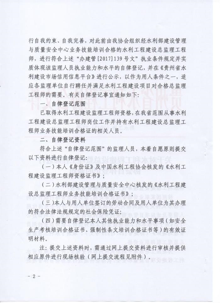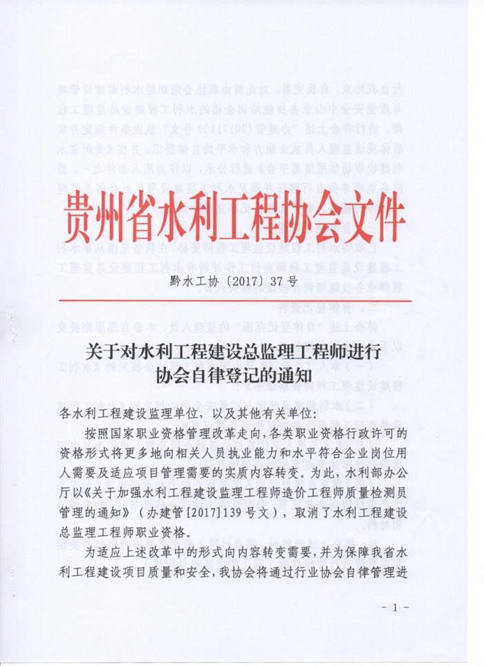 關(guān)于對(duì)水利工程建設(shè)總監(jiān)理工程師進(jìn)行協(xié)會(huì)自律登記的通知