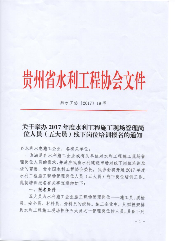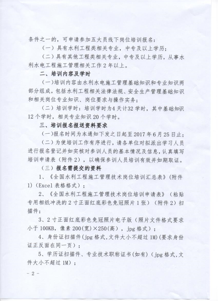 關于舉辦2017年度水利工程施工現(xiàn)場管理崗位人員(五大員)線下崗位培訓報名的通知