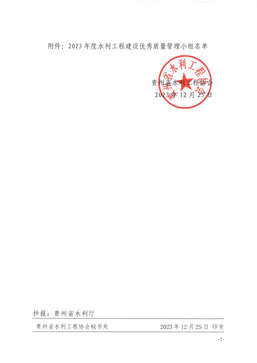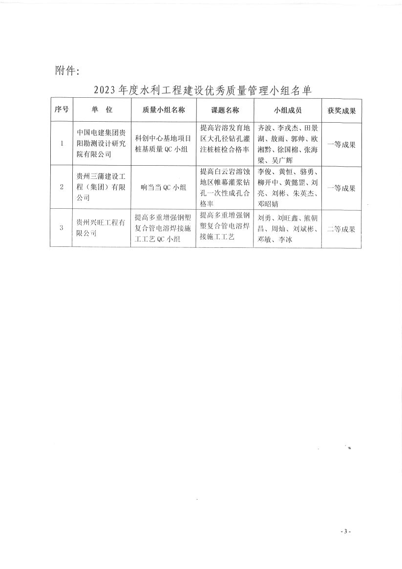 關于2023年度水利工程建設優(yōu)秀質量管理小組評選結果公示