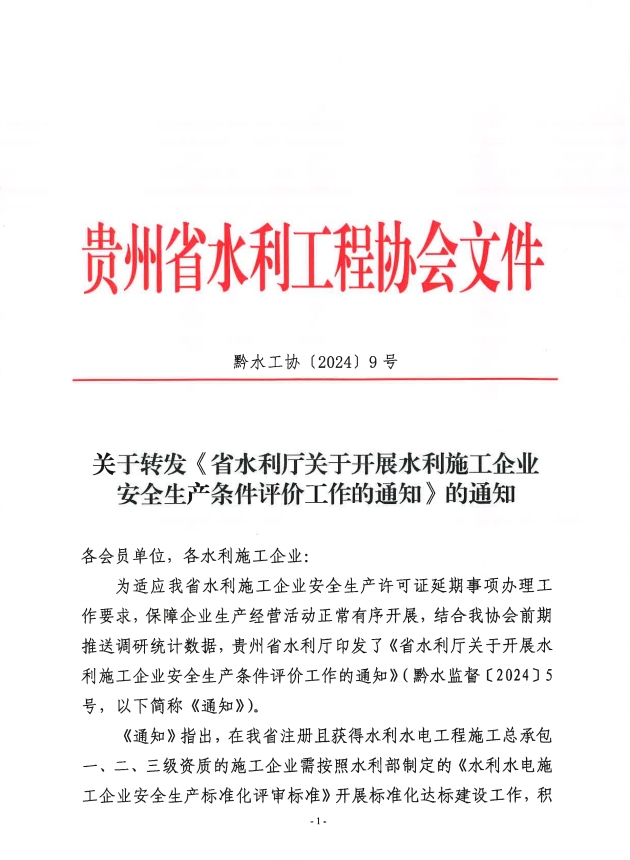 關(guān)于轉(zhuǎn)發(fā)《省水利廳關(guān)于開展水利施工企業(yè)安全生產(chǎn)條件評價工作的通知》的通知