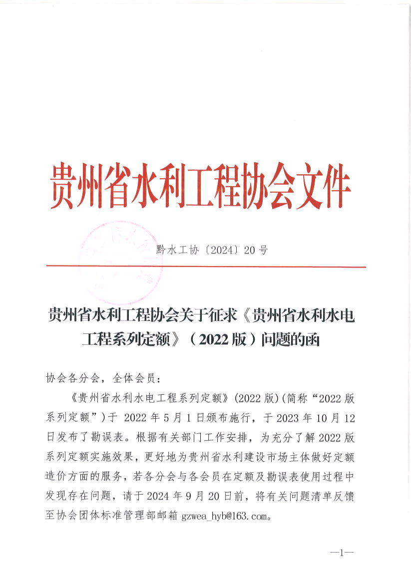 關于征求《貴州省水利水電工程系列定額》(2022版)問題的函