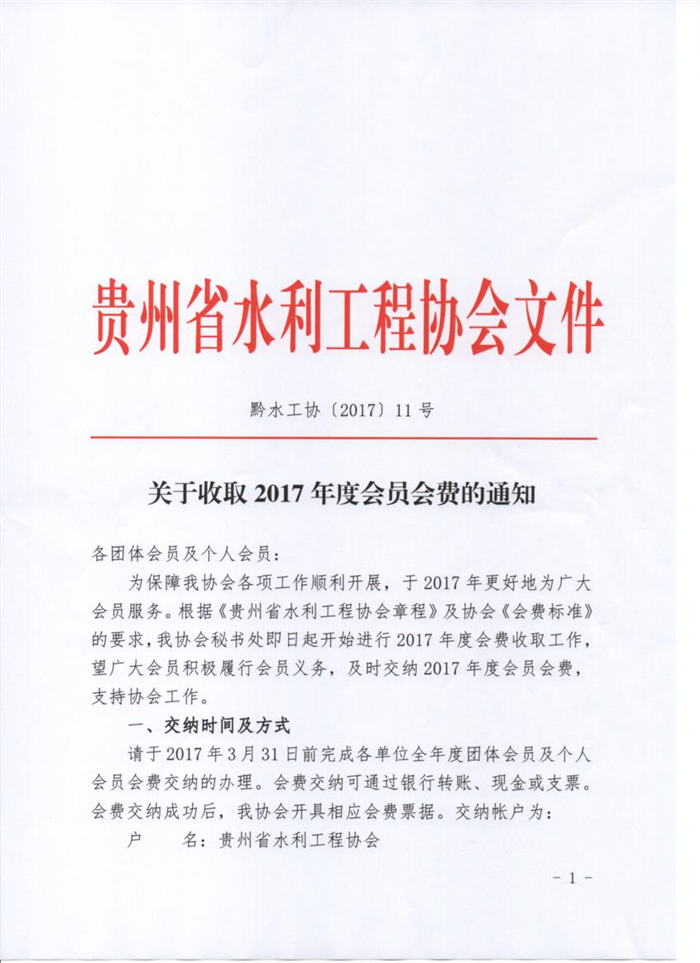 關(guān)于收取2017年度會員會費(fèi)的通知
