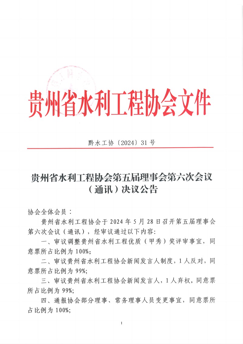第五屆理事會(huì)第六次會(huì)議(通訊)決議公告