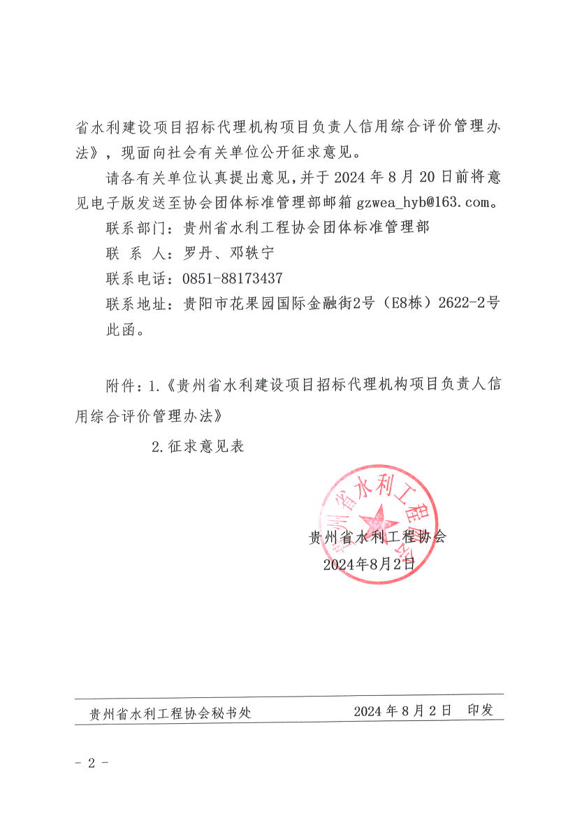 關(guān)于征求《貴州省水利建設(shè)項目招標(biāo)代理機構(gòu)項目負(fù)責(zé)人信用綜合評價管理辦法》意見的函