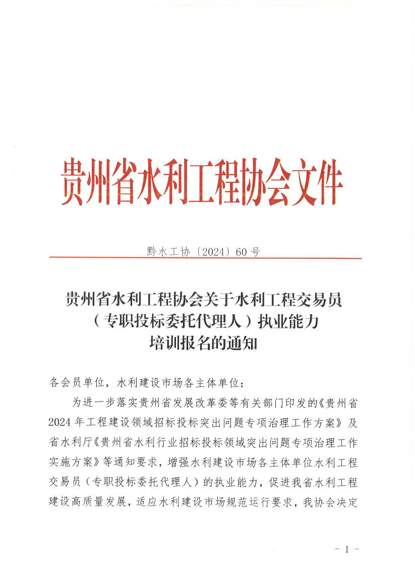 關(guān)于水利工程交易員(專職投標(biāo)委托代理人)執(zhí)業(yè)能力培訓(xùn)報名的通知