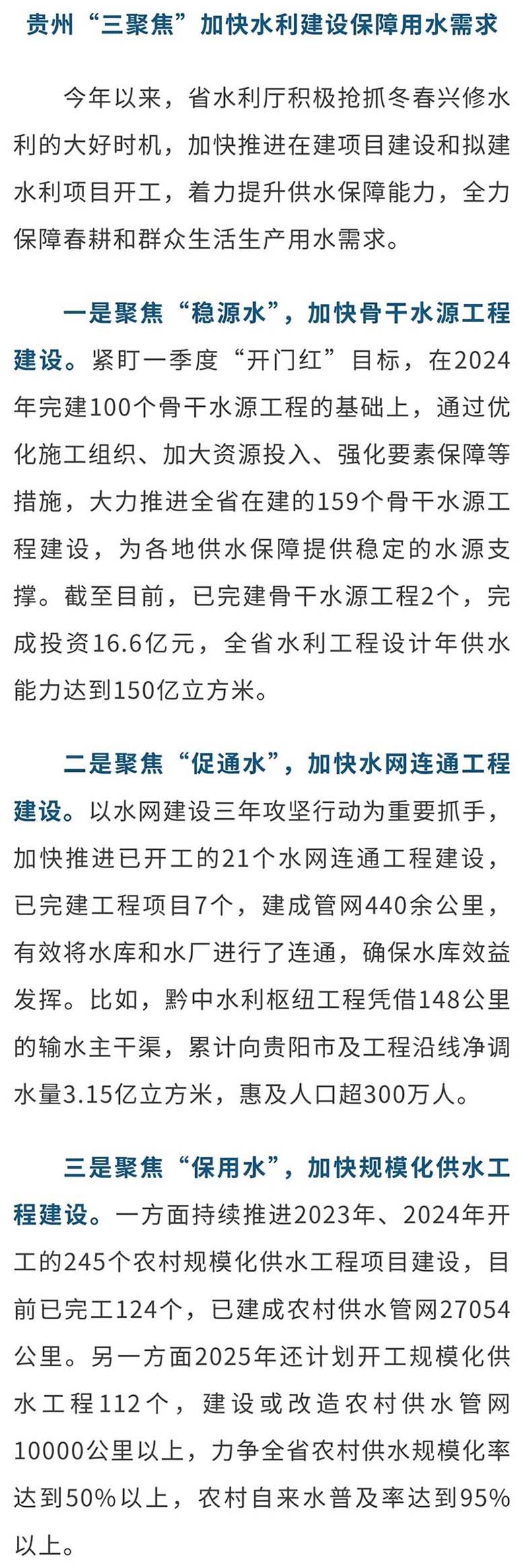 貴州“三聚焦”加快水利建設(shè)保障用水需求