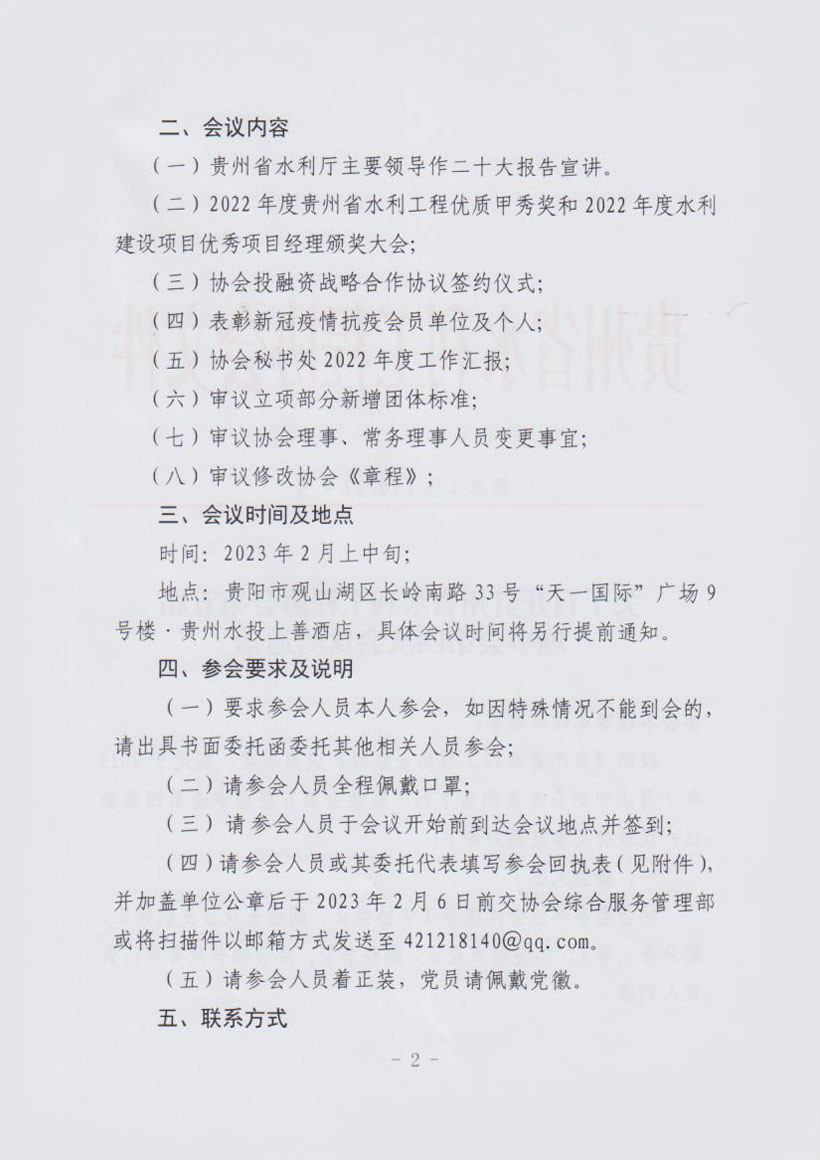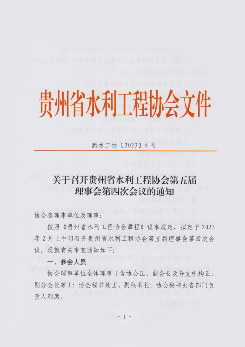 關(guān)于召開貴州省水利工程協(xié)會第五屆理事會第四次會議的通知