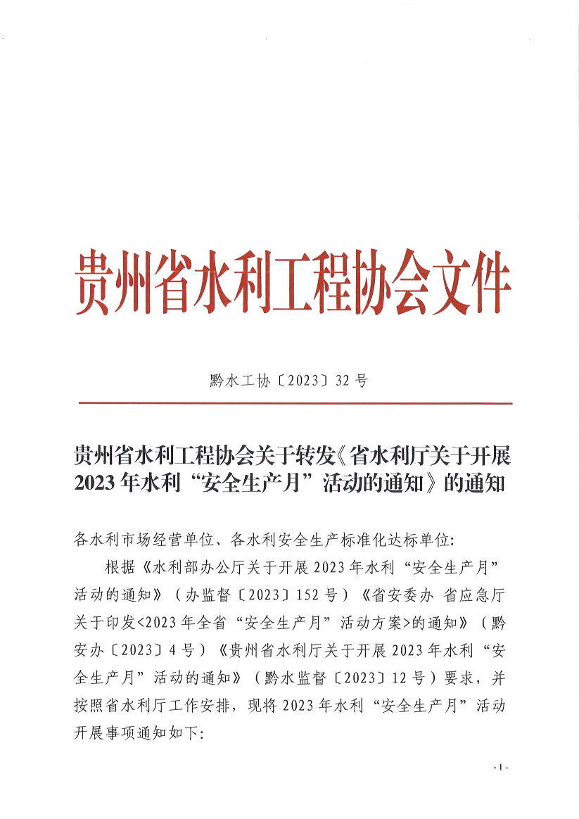 關(guān)于轉(zhuǎn)發(fā)《省水利廳關(guān)于開(kāi)展2023年水利“安全生產(chǎn)月”活動(dòng)的通知》 的通知