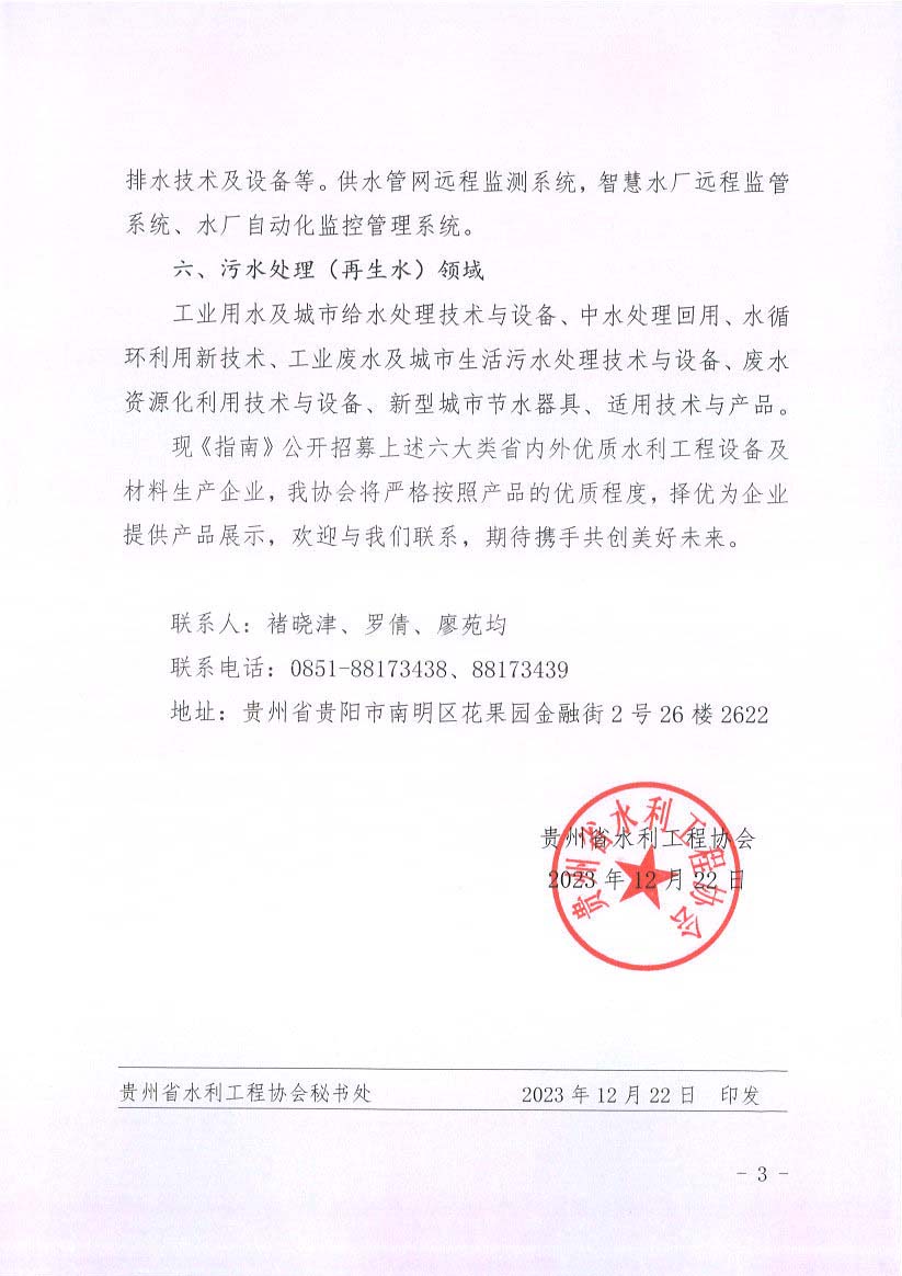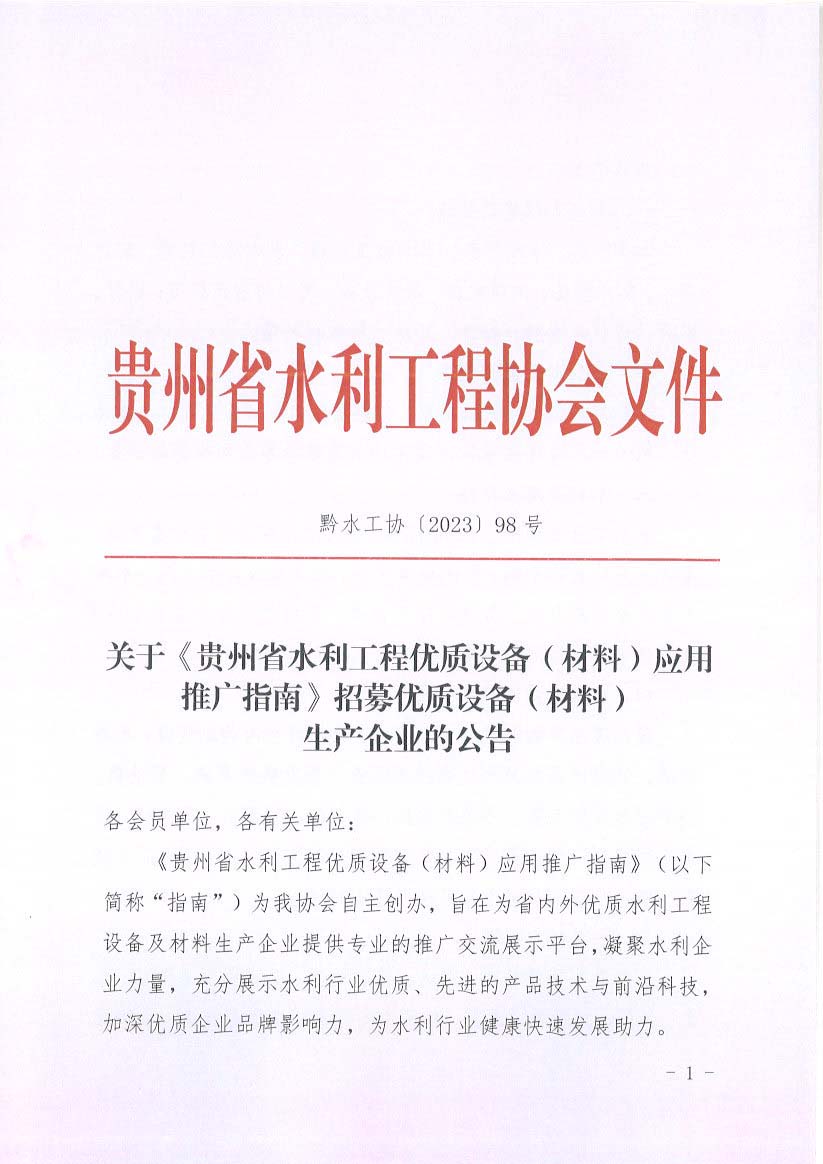 關(guān)于《貴州省水利工程優(yōu)質(zhì)設(shè)備(材料)應(yīng)用推廣指南》招募優(yōu)質(zhì)設(shè)備(材料)生產(chǎn)企業(yè)的公告
