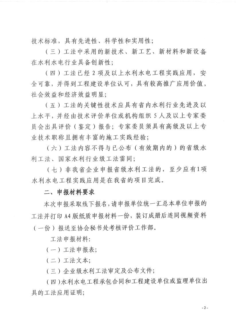 關(guān)于開(kāi)展2024年度地方水利工法申報(bào)工作的通知