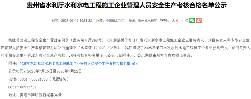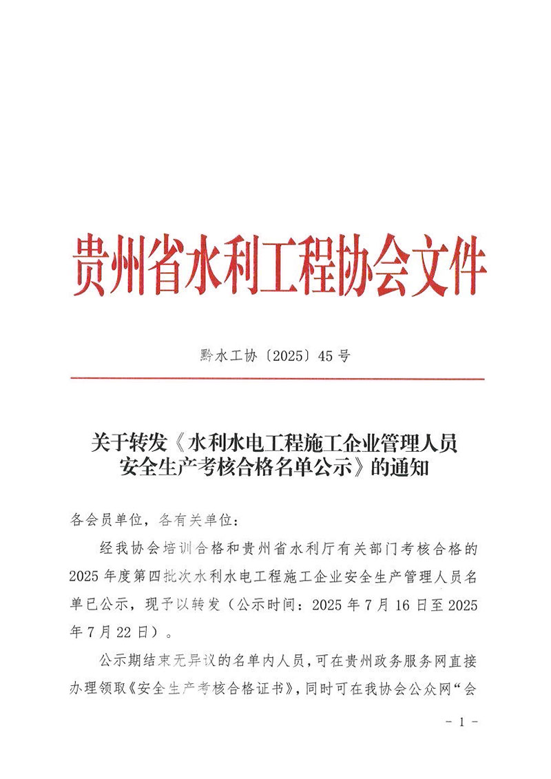 關(guān)于轉(zhuǎn)發(fā)《水利水電工程施工企業(yè)管理人員安全生產(chǎn)考核合格名單公示》的通知