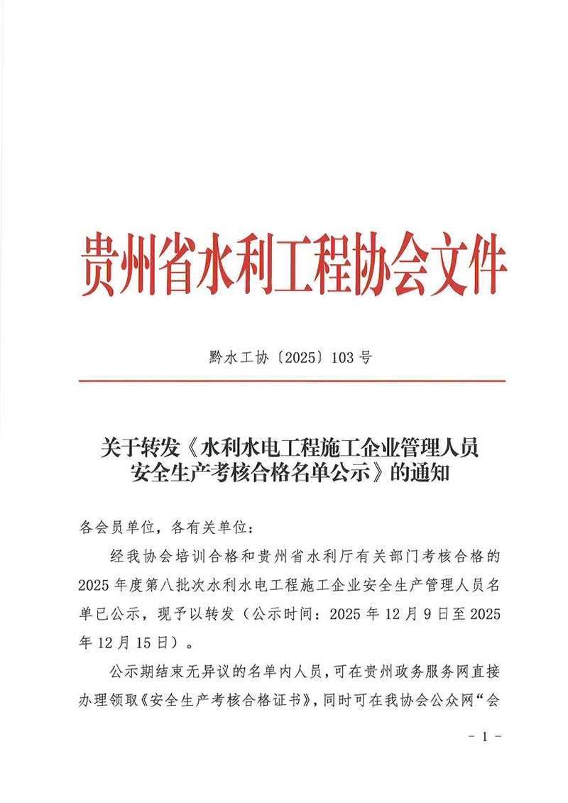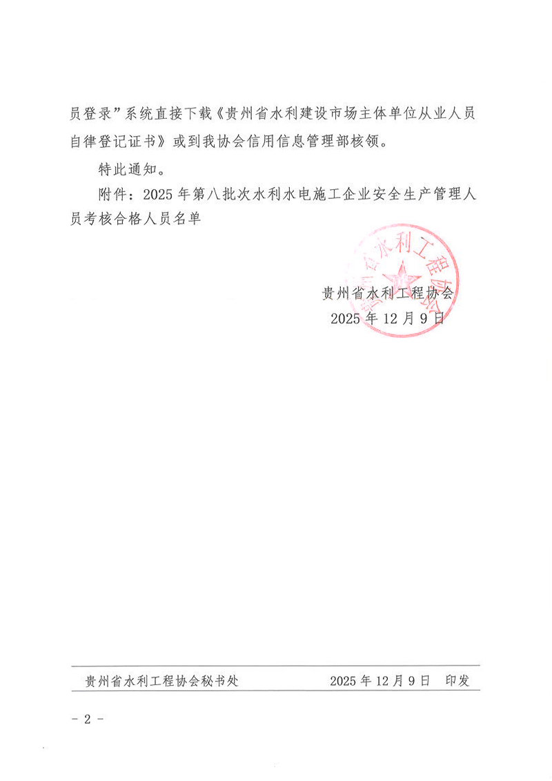 2025年第八批次水利水電工程施工企業(yè)管理人員安全生產(chǎn)考核合格名單