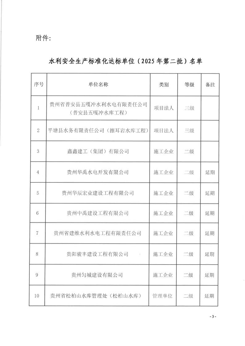 關于轉(zhuǎn)發(fā)《貴州省水利廳水利安全生產(chǎn)標準化達標單位(2025年第二批)公示》的通知