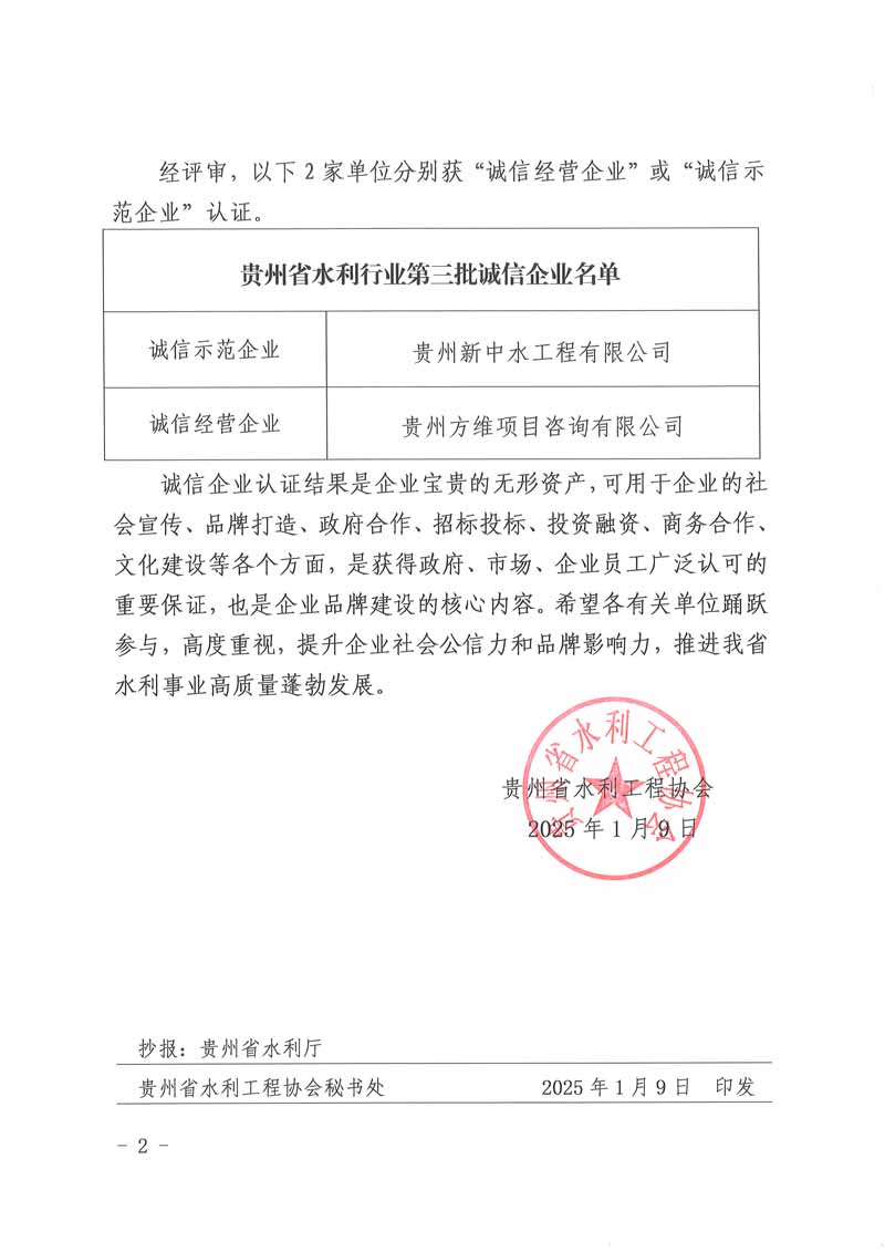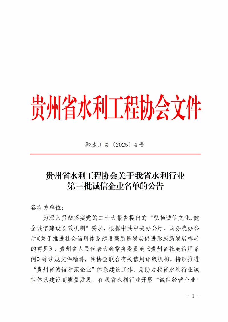 關(guān)于我省水利行業(yè)第三批誠信企業(yè)名單的公告