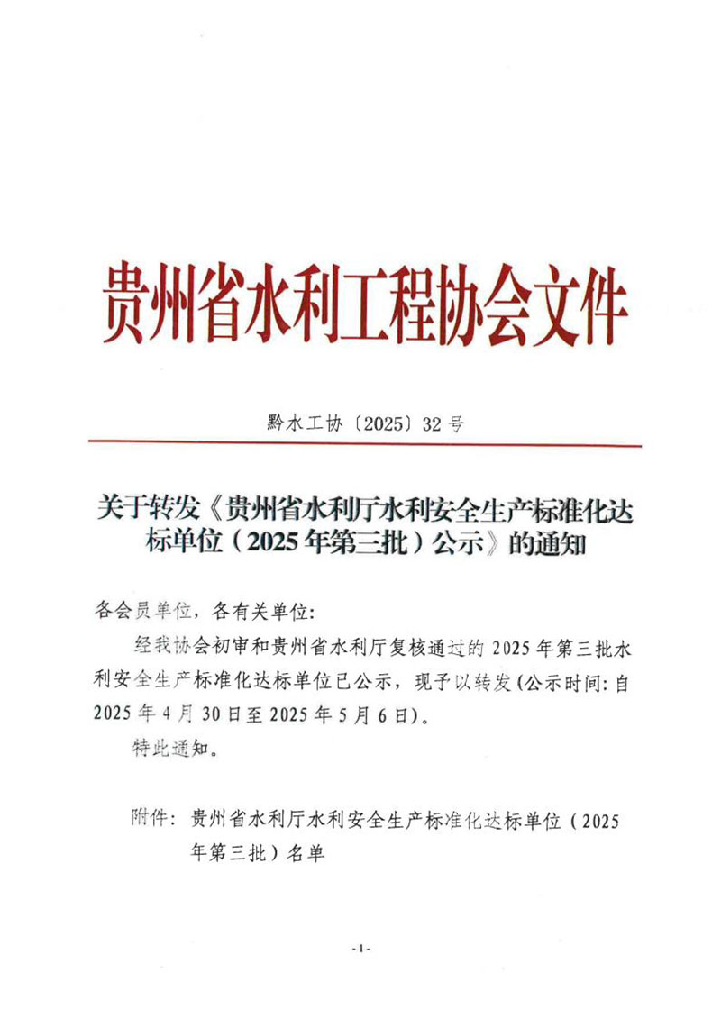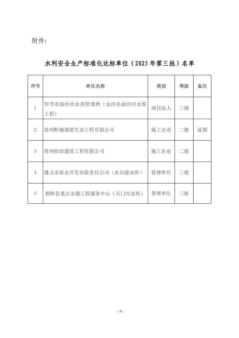 關(guān)于轉(zhuǎn)發(fā)《貴州省水利廳水利安全生產(chǎn)標(biāo)準(zhǔn)化達(dá)標(biāo)單位(2025年第三批)公示》的通知