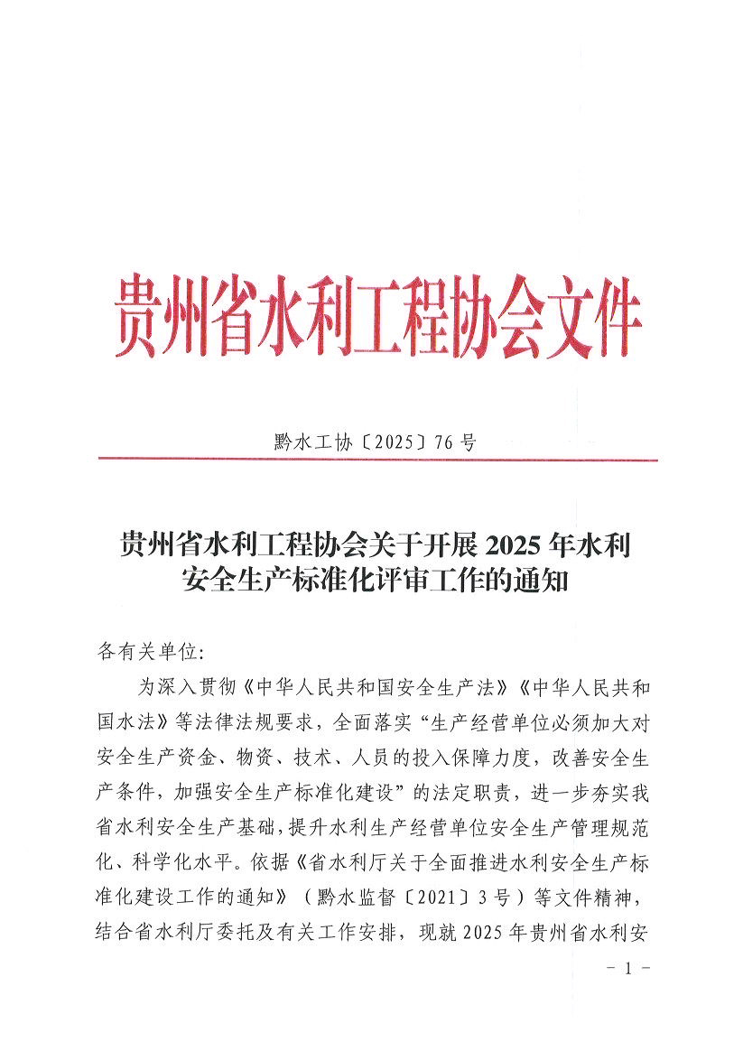 關(guān)于開展2025年水利安全生產(chǎn)標(biāo)準(zhǔn)化評審工作的通知