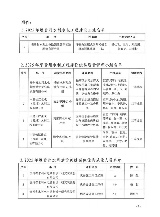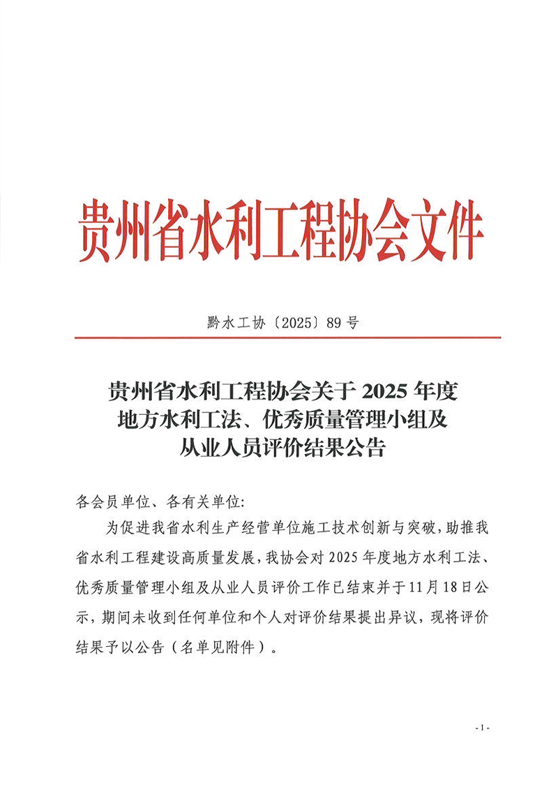 關(guān)于2025年度地方水利工法、優(yōu)秀質(zhì)量管理小組及從業(yè)人員評價結(jié)果公告