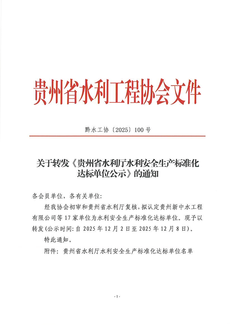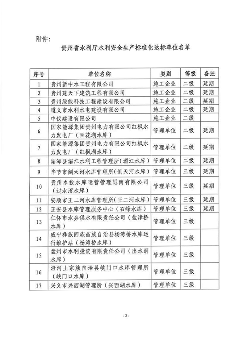 關(guān)于轉(zhuǎn)發(fā)《貴州省水利廳水利安全生產(chǎn)標(biāo)準(zhǔn)化達(dá)標(biāo)單位公示》的通知