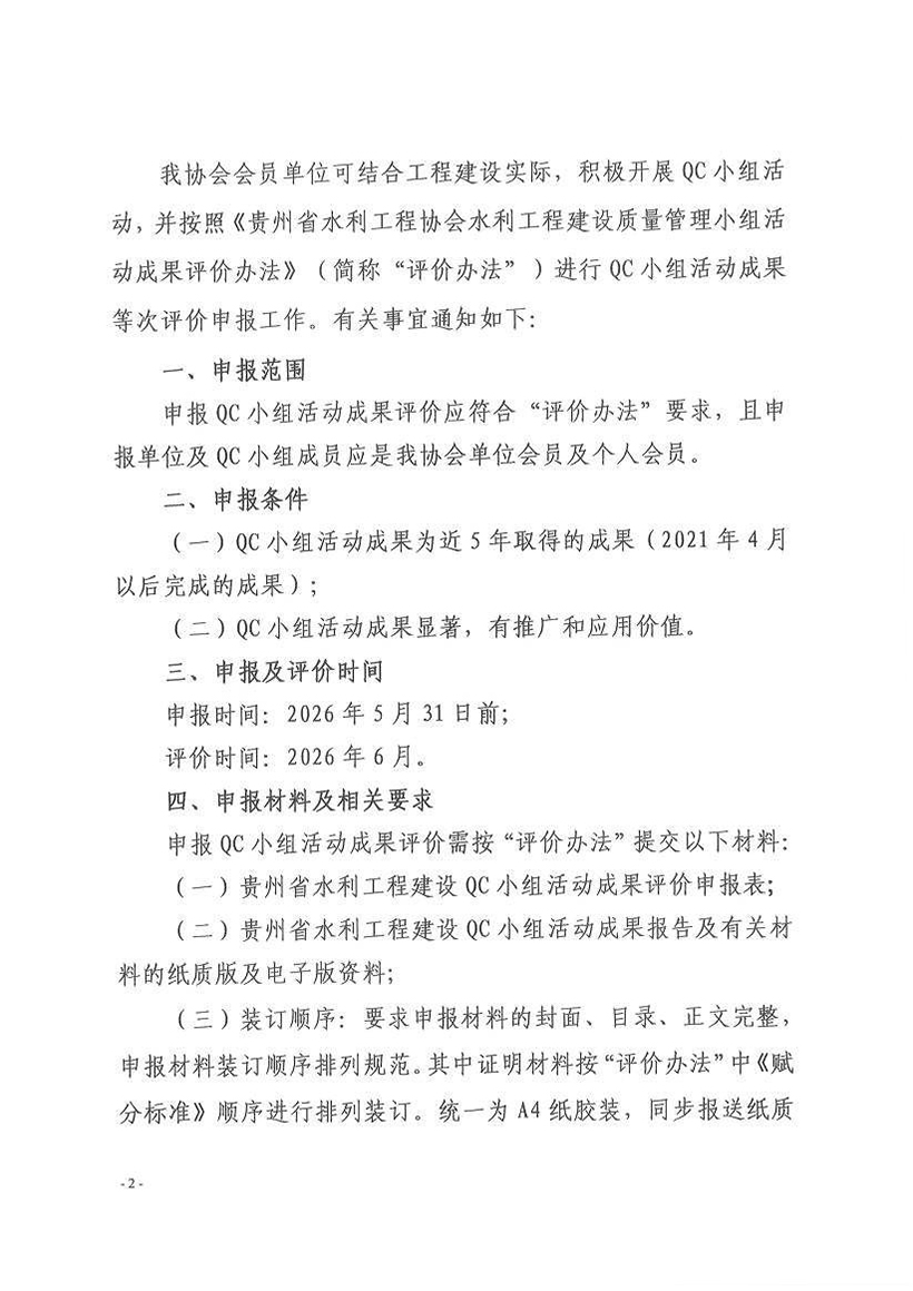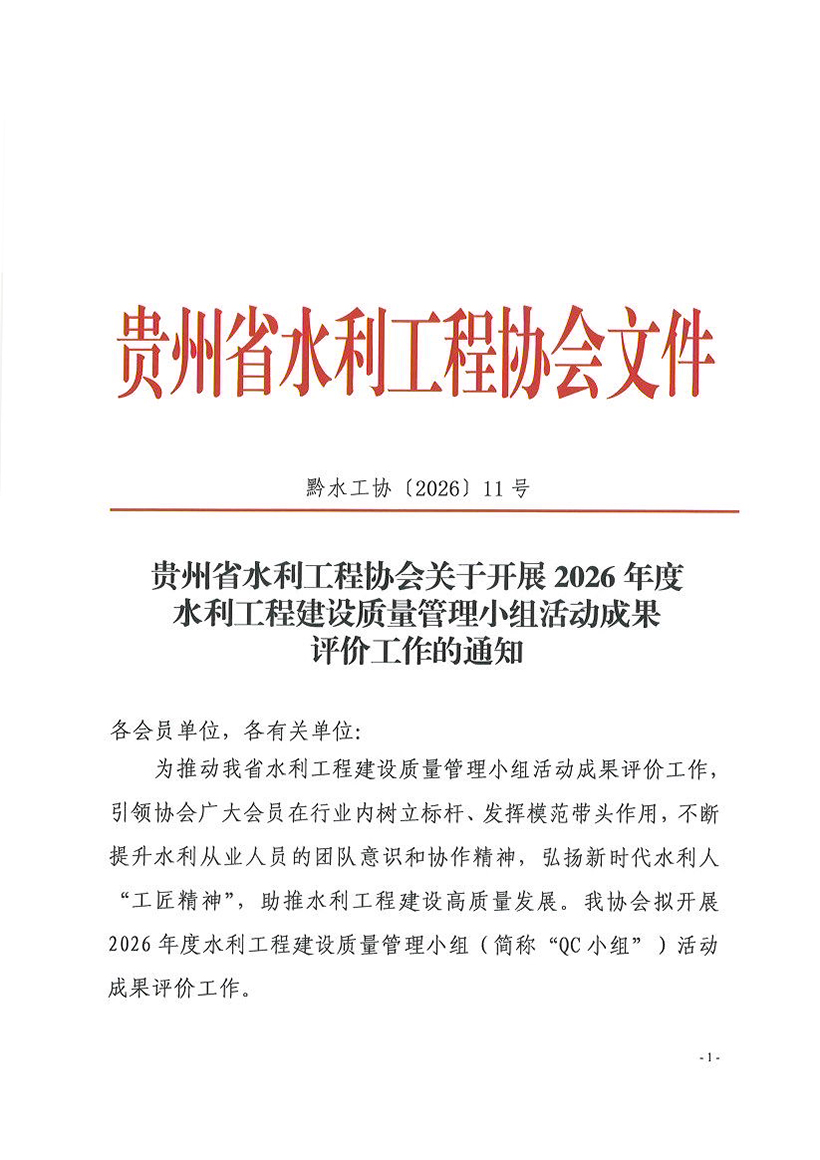 關(guān)于開(kāi)展2026年度水利工程建設(shè)質(zhì)量管理小組活動(dòng)成果評(píng)價(jià)工作的通知