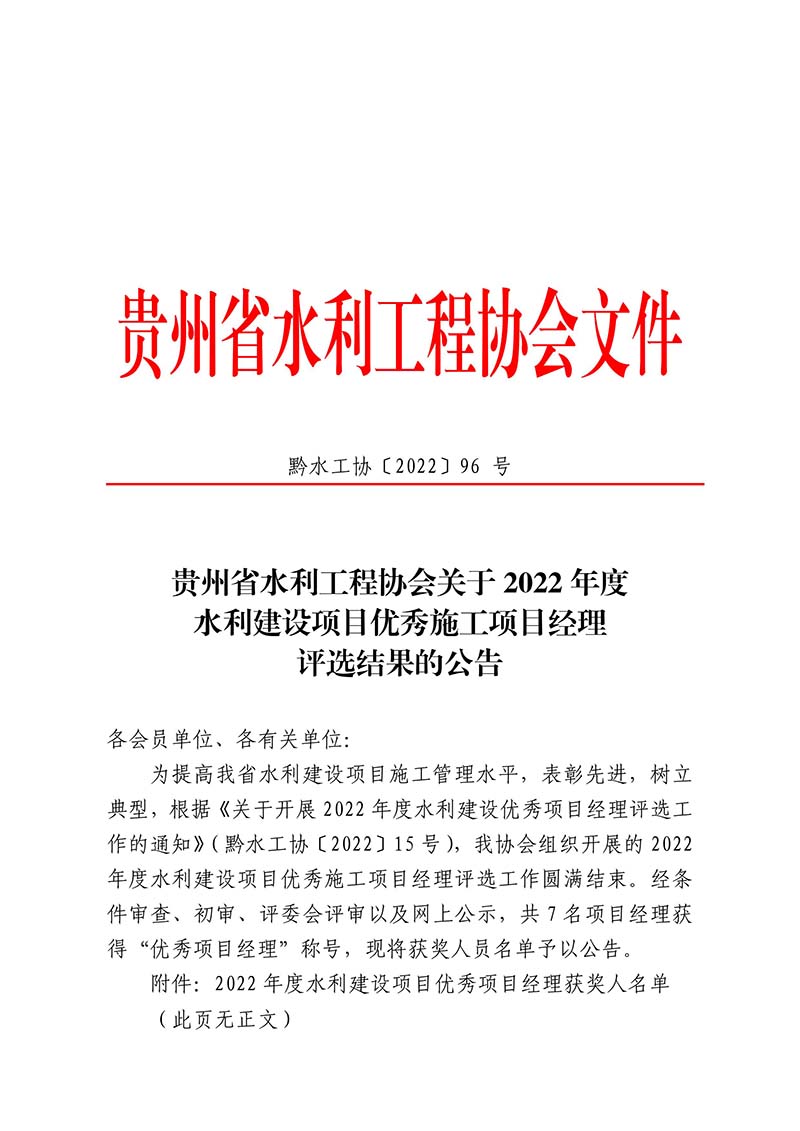 關(guān)于2022年度水利建設(shè)項目優(yōu)秀施工項目經(jīng)理評選結(jié)果的公告