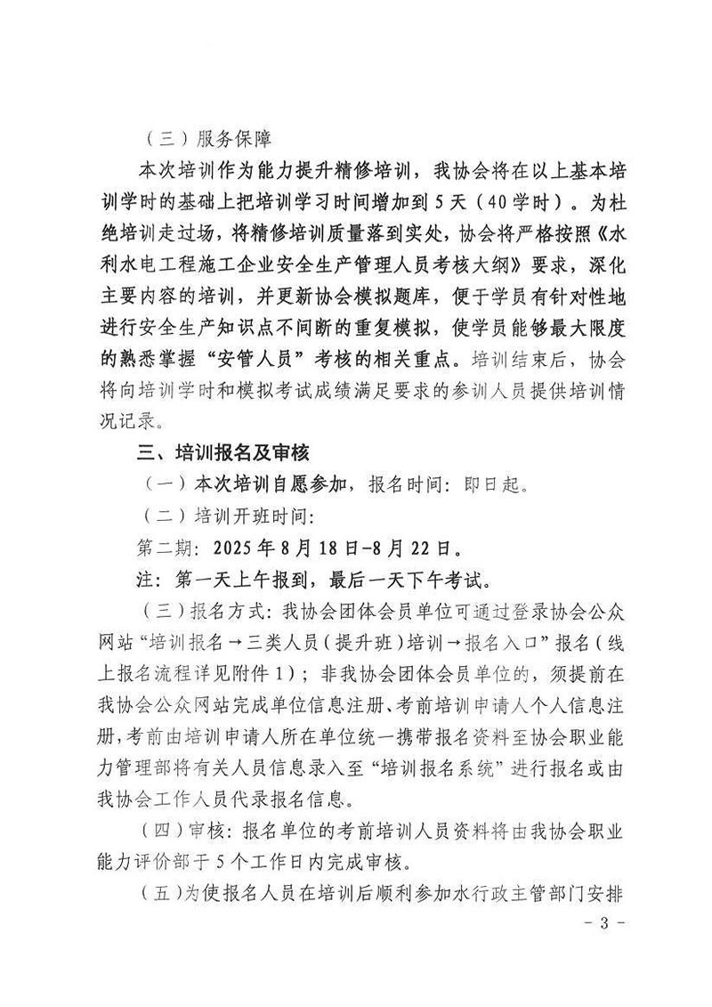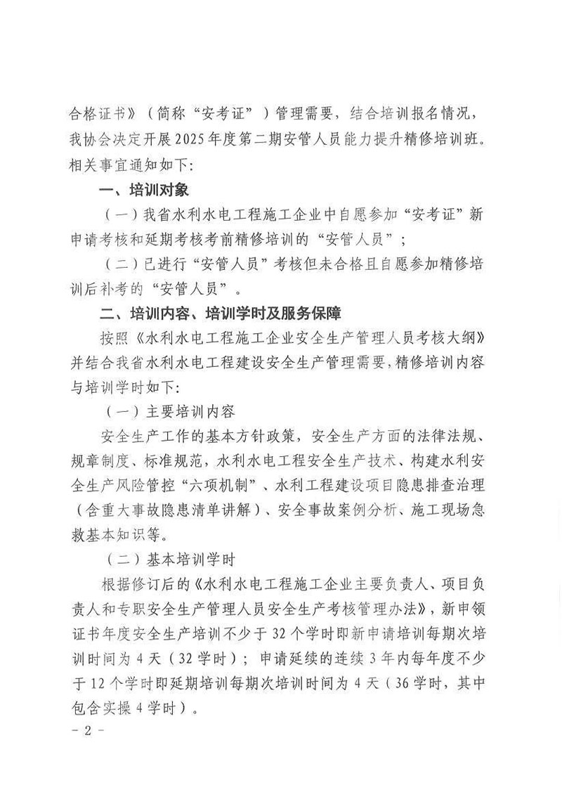 關于2025年度水利水電工程施工企業(yè)安全生產管理人員能力提升精修培訓第二期開班的通知