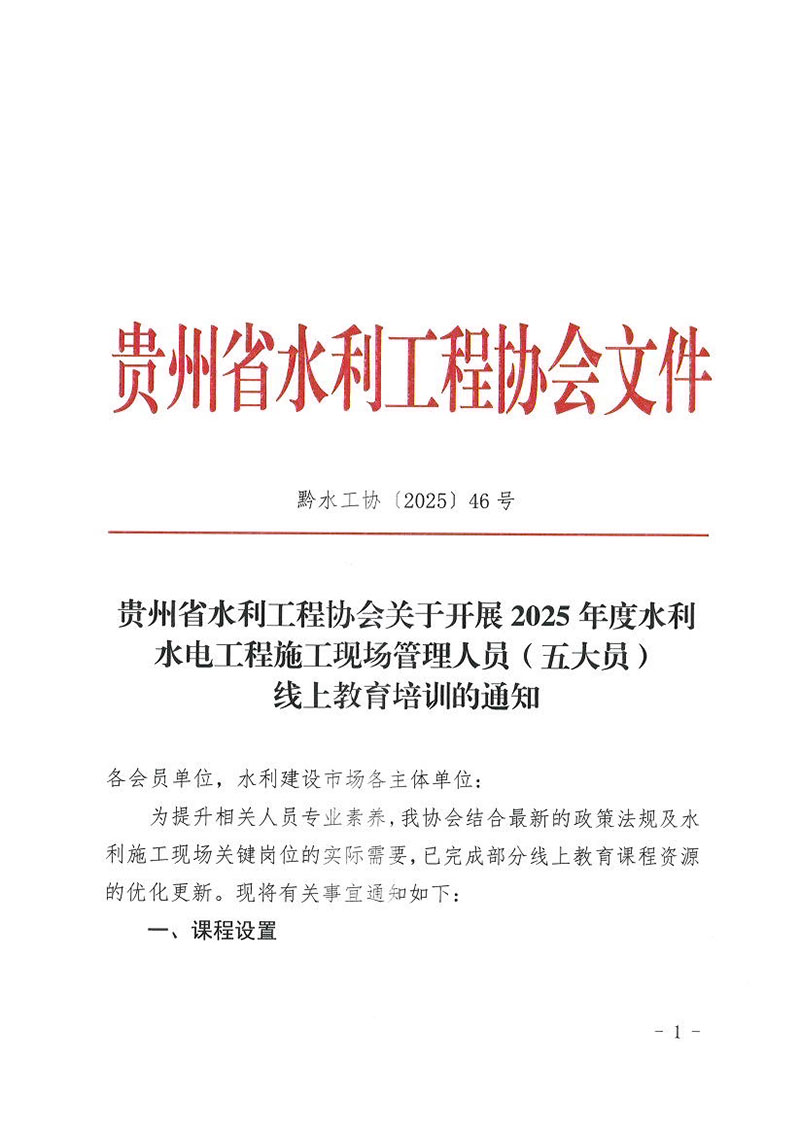 關(guān)于開展2025年度水利水電工程施工現(xiàn)場(chǎng)管理人員(五大員)線上教育培訓(xùn)的通知