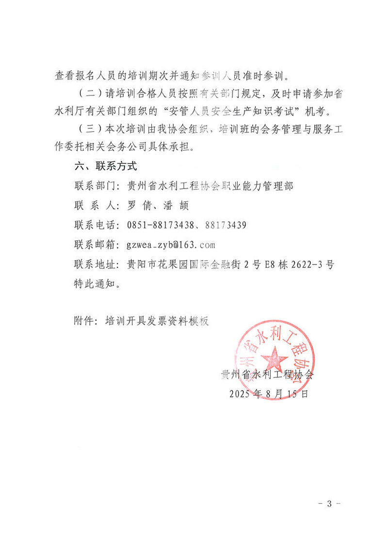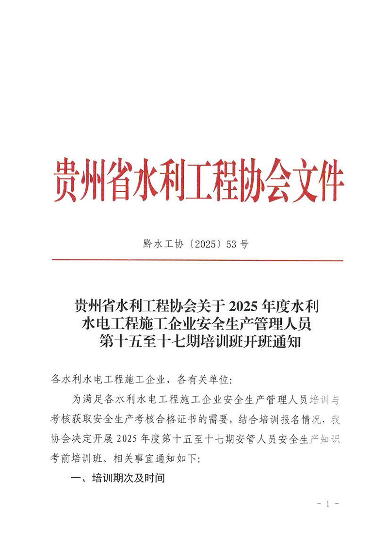 關(guān)于2025年度水利水電工程施工企業(yè)安全生產(chǎn)管理人員第十五至十七期培訓(xùn)班開(kāi)班通知