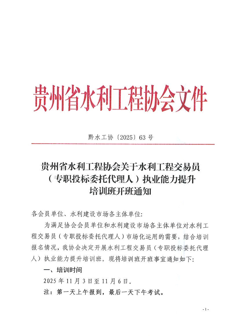 關于水利工程交易員(專職投標委托代理人)執(zhí)業(yè)能力提升培訓班開班通知