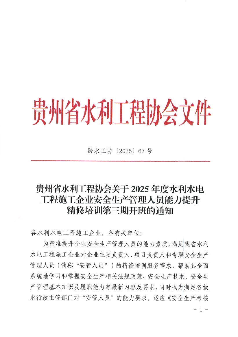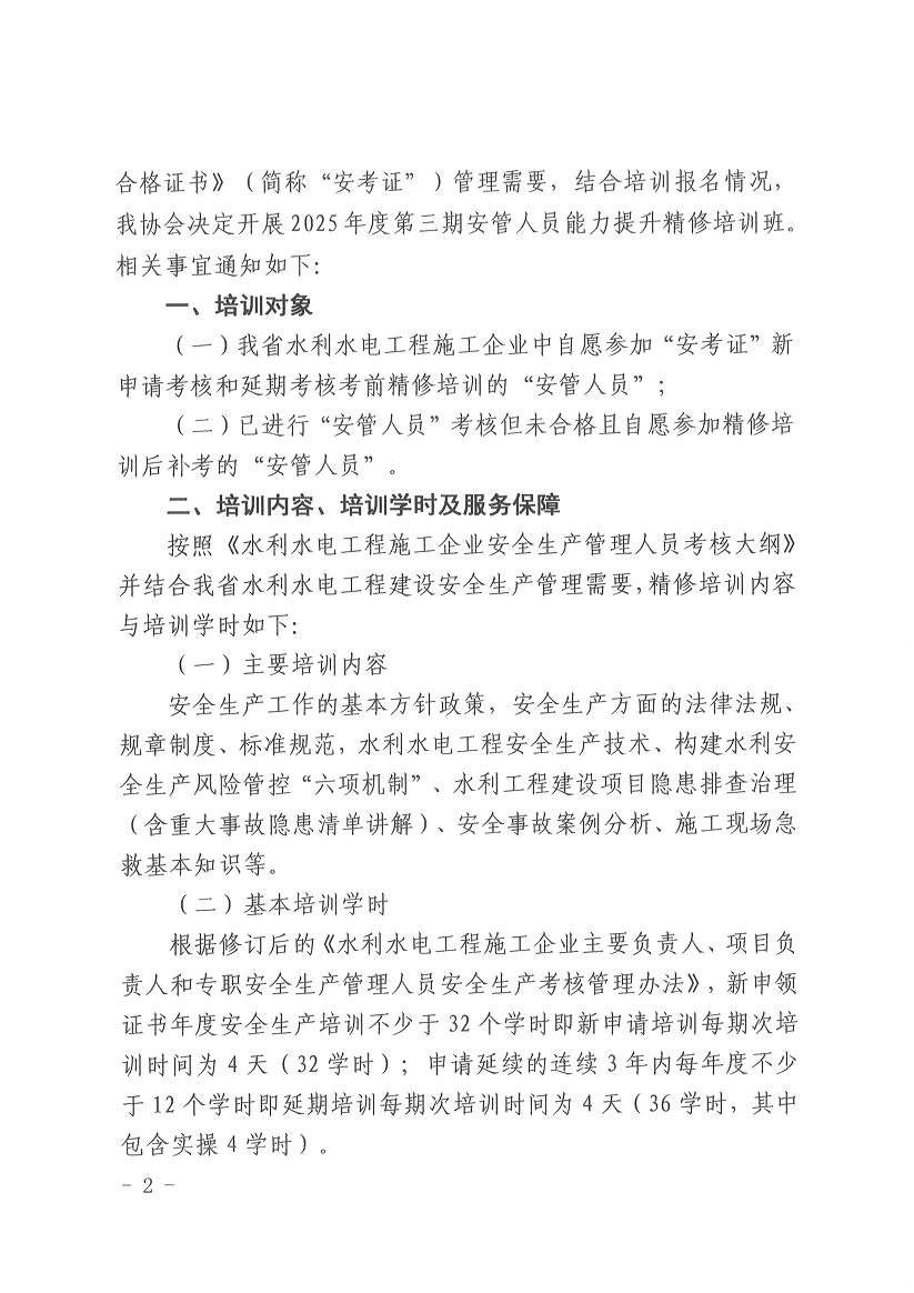 關(guān)于2025年度水利水電工程施工企業(yè)安全生產(chǎn)管理人員能力提升精修培訓(xùn)第三期開班的通知