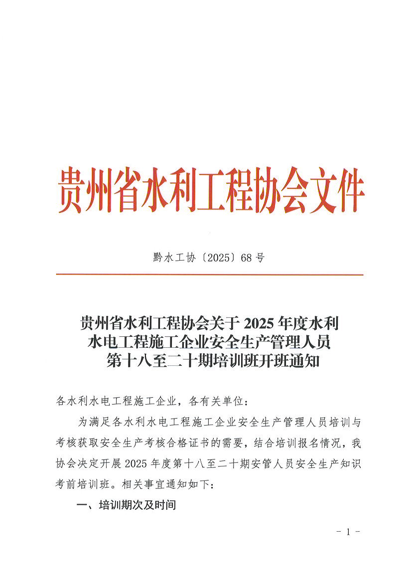 關(guān)于2025年度水利水電工程施工企業(yè)安全生產(chǎn)管理人員第十八至二十期培訓(xùn)班開班通知